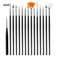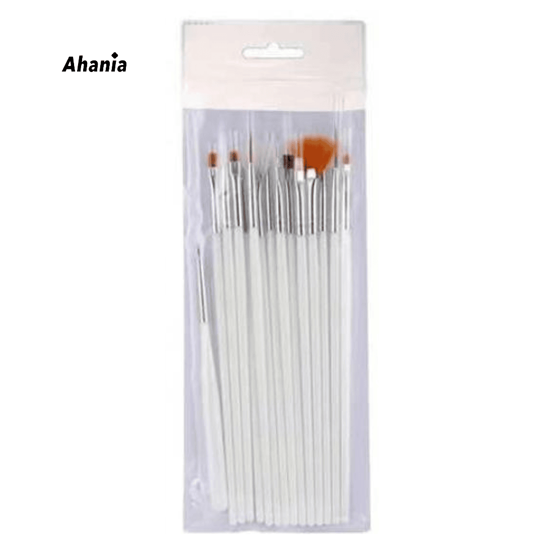 Ahania Kit de 15 Pinceis para Unha - Duzia Com Preto, Branco, Rosa Misto / 12 peças